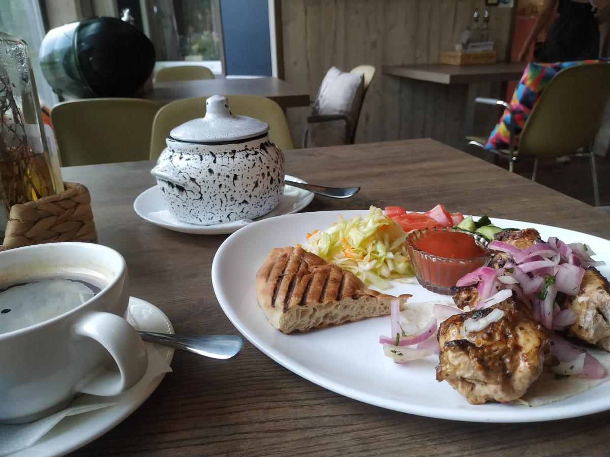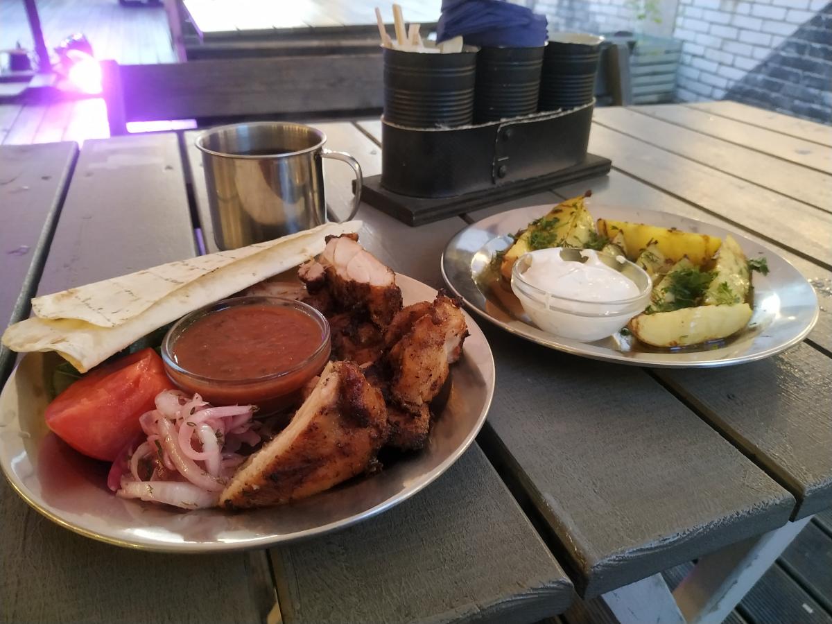 Пицца и шашл вкусные. В общем то что одно что второе и третье можно брать из-за сочной дымной курятины на мангале. Овощи не поражают своей свежестью.