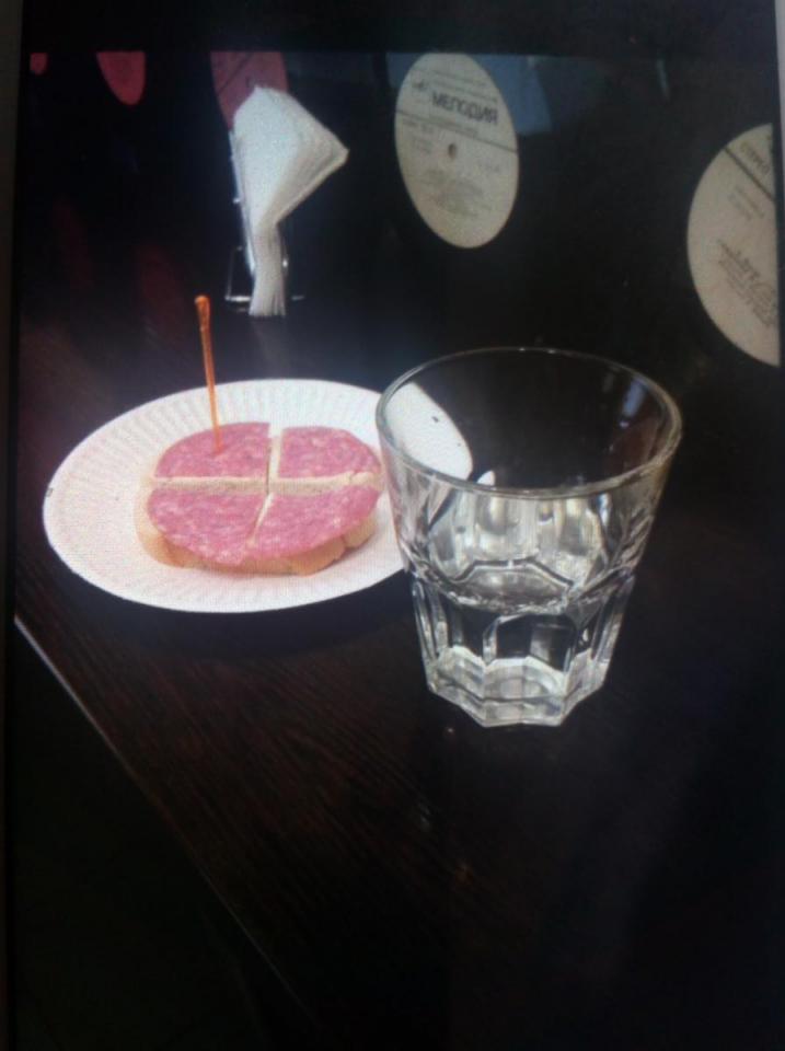 водка обычная, жидкая, бутерброд сильно давнишний..