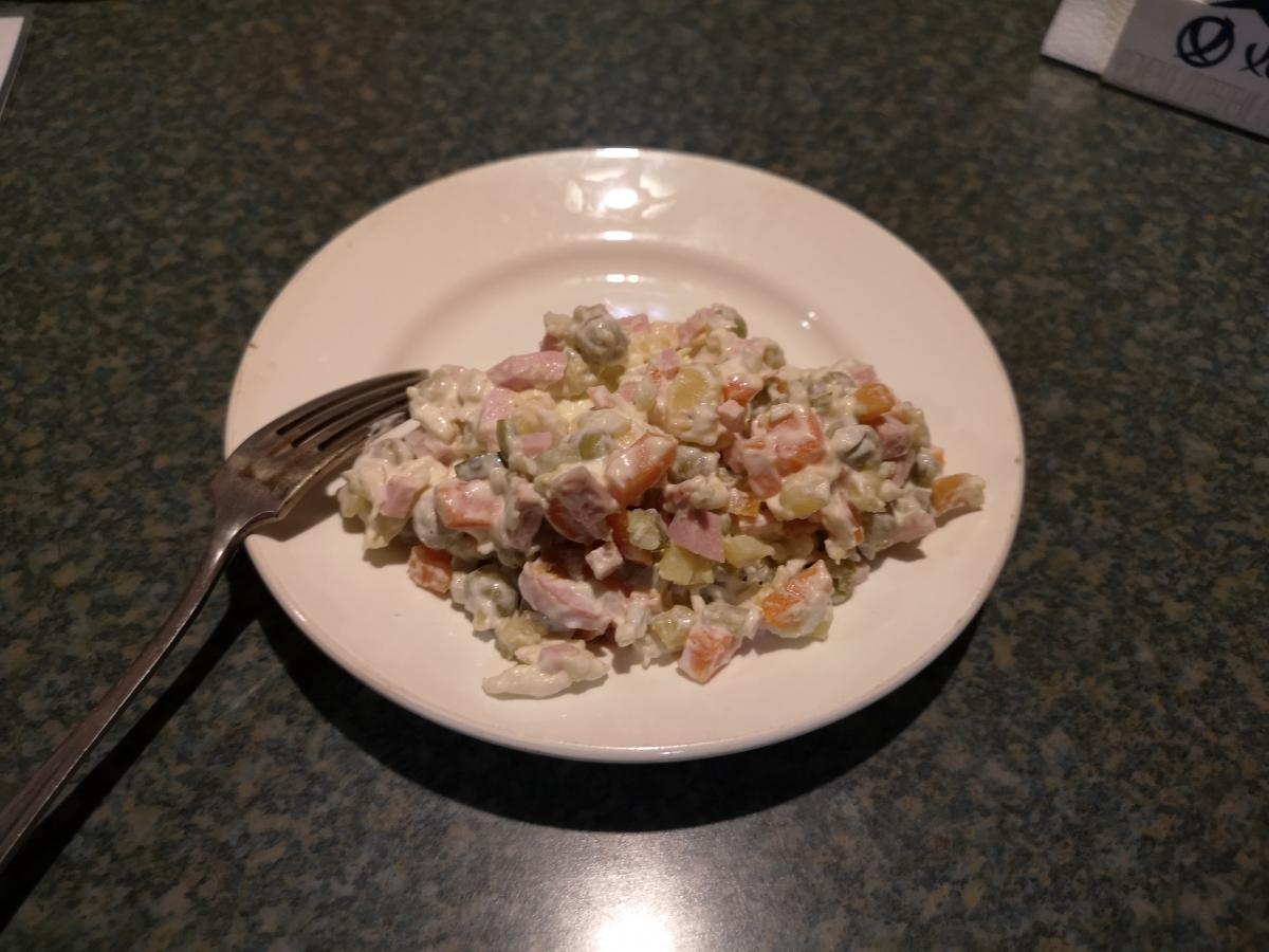 " 50 водки и 100 гр оливье- 69 рэ.."