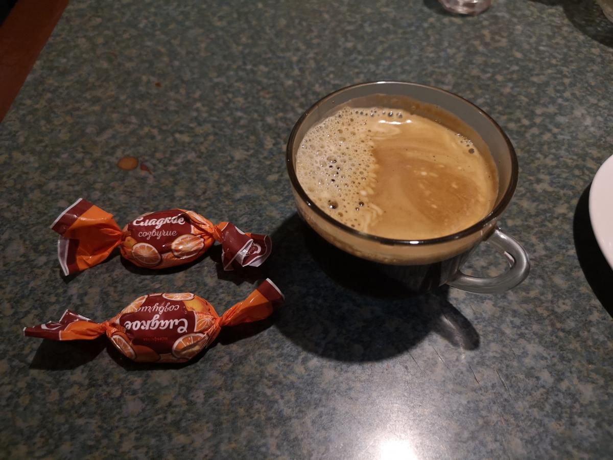 По традиции, как везде, спросил американо. Кофемашина маленькая и отстойная, качество кофе - на 3+. В общем, выпить его можно, но не нужно