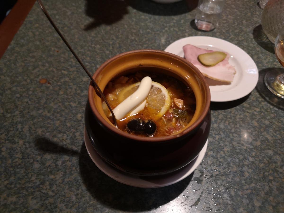 Помимо водки и бутеров, имеется кое-какая еда. Однако повара нет, солянку и салаты привозят откуда-то. Бутерброды, как я понял, режет барменша.