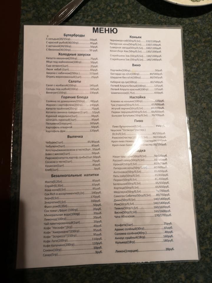 По ценнику - рюмка водки и бутер позволяют уложиться в сто рублей. Прочие цены видны на фото.