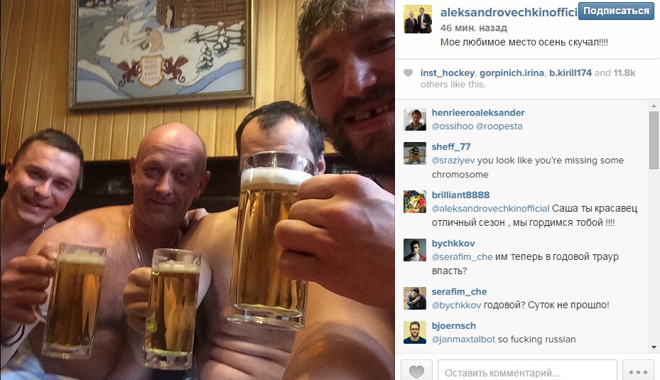 Хоккеист сборной России Александр Овечкин после финала чемпионата мира-2015, в котором россияне проиграли канадцам 1:6, вернулся в Москву из Праги. По возвращении игрок отправился отдыхать в баню с друзьями.