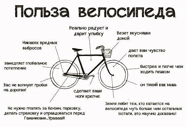 по теме. Катаюсь иногда, но помалу. Тут ездил на открытие велосезона и так забились мышцы от каких-то 30 км(правда у меня переключатель не настроен и я на одной передаче качу и в гору и по хорошему прямому асфальту), что домой пешком пришлось идти полпути))) Правда вчера прокатил свой рекорд - около 50 км - сгонял на Парк победы, и даже чуть дальше(посмотрел на нашу Эйфелеву башню), два раза потерялся по пути, но в итоге доехал домой - мышцы уже так не болели - все-таки самому по себе ехать проще намного чем в колонне...