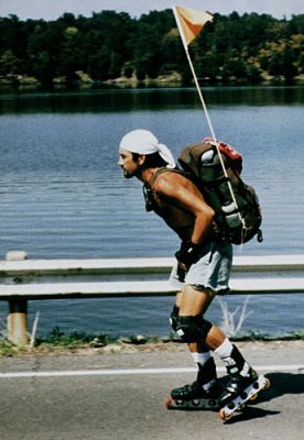 В теории ролики тоже можно как транспорт пользовать..Есть же такая невероятная история как один англичанин 13 лет скитался по каким то ебеням на велосипеде и роликах!